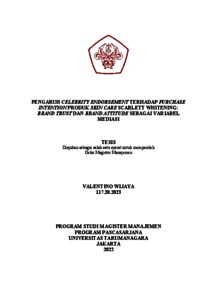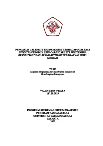 WIJAYA, VALENTINO (2021) PENGARUH CELEBRITY ENDORSEMENT TERHADAP PURCHASE INTENTION PRODUK SKIN CARE SCARLETT WHITENING: BRAND TRUST DAN BRAND ATTITUDE SEBAGAI VARIABEL MEDIASI. Masters thesis, Universitas Tarumanagara.