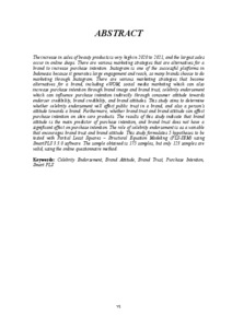 endorser credibility, brand credibility, and brand attitudes. This study aims to determine whether celebrity endorsement will affect public trust in a brand, and also a person's attitude towards a brand. Furthermore, whether brand trust and brand attitude can affect purchase intention on skin care products. The results of this study indicate that brand attitude is the main predictor of purchase intention, and brand trust does not have a significant effect on purchase intention. The role of celebrity endorsement is as a variable that encourages brand trust and brand attitude. This study formulates 5 hypotheses to be