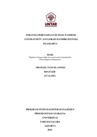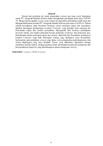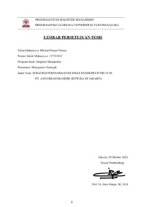 GONSA, MICHAEL FANUEL (2022) STRATEGI PERUSAHAAN DI MASA PANDEMI COVID-19 DI PT. ANUGERAH MANDIRI SENTOSA DI JAKARTA. Masters thesis, Universitas Tarumanagara.