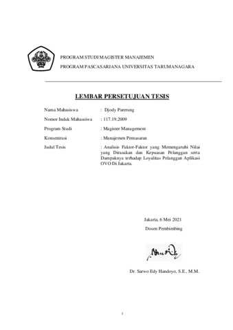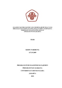 PARERUNG, DJODY (2020) ANALISIS FAKTOR-FAKTOR YANG MEMENGARUHI NILAI YANG DIRASAKAN DAN KEPUASAN PELANGGAN SERTA DAMPAKNYA TERHADAP LOYALITAS PELANGGAN APLIKASI OVO DI JAKARTA. Masters thesis, Universitas Tarumanagara.