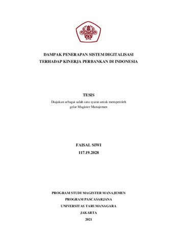 SIWI, FAISAL (2020) DAMPAK PENERAPAN SISTEM DIGITALISASI TERHADAP KINERJA PERBANKAN DI INDONESIA. Masters thesis, Universitas Tarumanagara.