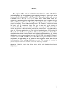 performance of banks listed on the Indonesia Stock Exchange before and after the implementation of the banking digitalization system. This research is expected to provide input for banks and investors to evaluate in making decisions.
