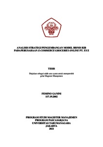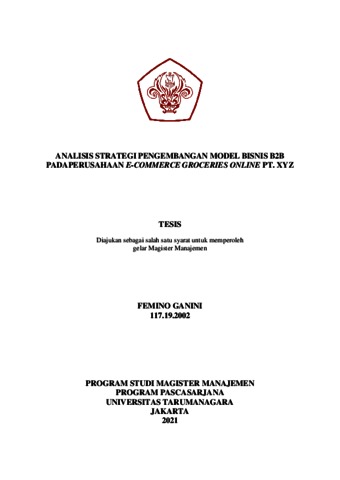 GANINI, FEMINO (2020) ANALISIS STRATEGI PENGEMBANGAN MODEL BISNIS B2B PADA PERUSAHAAN E-COMMERCE GROCERIES ONLINE PT. XYZ. Masters thesis, Universitas Tarumanagara.
