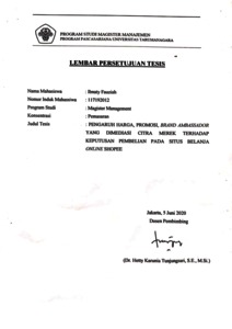 FAUZIAH, IBNATY (2020) PENGARUH HARGA, PROMOSI, BRAND AMBASSADOR YANG DIMEDIASI OLEH CITRA MEREK TERHADAP KEPUTUSAN PEMBELIAN PADA SITUS BELANJA ONLINE SHOPEE. Masters thesis, Universitas Tarumanagara.