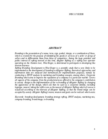 Branding is the presentation of a name, term, sign, symbol, design, or a combination of these, which is created for the purpose of identifying the goods or services of a seller or group of sellers and to differentiate them from those of competitors. Seeing the huge potential and public interest in rafting tourism at this time, Aligator Rafting as a rafting tour operator operating on the Cianten river, West Bogor, is determined to participate in developing this