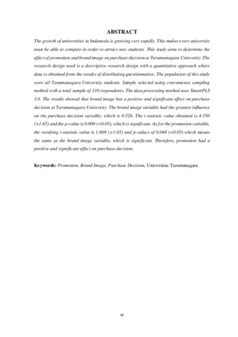 Keywords: Promotion, Brand Image, Purchase Decision, Universitas Tarumanagara