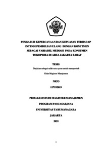 NICO, NICO (2020) PENGARUH KEPERCAYAAN DAN KEPUASAN TERHADAP INTENSI PEMBELIAN ULANG DENGAN KOMITMEN SEBAGAI VARIABEL MEDIASI PADA KONSUMEN TOKOPEDIA DI AREA JAKARTA BARAT. Masters thesis, Universitas Tarumanagara.
