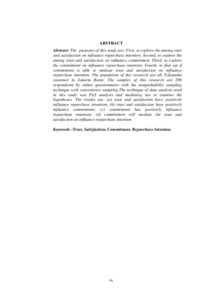 repurchase intention; (d) commitment will mediate the trust and satisfaction on influance repurchase intention.