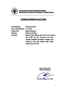| Uncontrolled Keywords: | Capital Adequacy Ratio (CAR), Loan to Deposit Ratio (LDR), Non Performing Loan (NPL), Profitability |