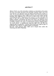 sector that has a very important role for the stability and growth of the economy as a whole. To assess the performance of banking companies can be measured using ratios including Capital Adequacy Ratio (CAR), Loan to Deposit Ratio (LDR), and Non Performing Loan (NPL). The purpose of this research is to know and analyze the impact of CAR, LDR, and NPL, partially and simultaneously to profitability at all banking companies (conventional and sharia) that listed in the Indonesian Stock Exchange in the period 2017-2019. The research was conducted using samples from 41 banking companies. The samples was determined by purposive sampling method. The results showed: 1) simultaneously tested that CAR, LDR, and NPL have significant effect on profitability. 2) partially LDR and NPL have significant effect on