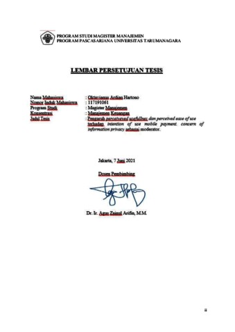 HARTONO, OKTAVIANUS ARDIAN (2020) PENGARUH PERCEIVED USEFULLNES DAN PERCEIVED EASE OF USE TERHADAP INTENTION OF USE MOBILE PAYMENT DI DKI JAKARTA: CONCERN OF INFORMATION PRIVACY SEBAGAI VARIABEL MODERATOR. Masters thesis, Universitas Tarumanagara.