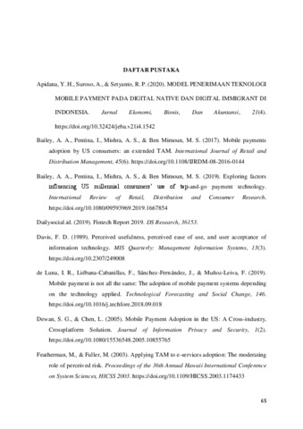The purpose of this paper is to explore the relationship of perceived usefulness and perceived ease of use on users’ intention. A survey was conducted on 323 respondend as owmer’s of bank account live in DKI Jakarta and using Mobil payment during Desember 2020. The data was collected using non-probability sampling and this research is a descriptive and verificative research. The results showed that perceived usefullnes and perceived ease of use had a positive and significant impact on user’s intention of use on mobile payment. Usefullnes and Ease of Use that user will expect to experiencing. Findings of the current study can contribute to give a broader perception of behavioral mechanisms management in both company and users.