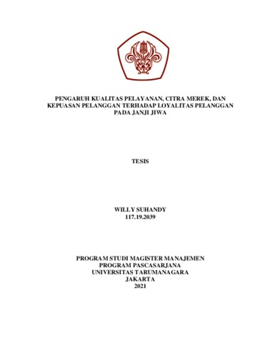 SUHANDY, WILLY (2020) PENGARUH KUALITAS PELAYANAN, CITRA MEREK, DAN KEPUASAN PELANGGAN TERHADAP LOYALITAS PELANGGAN PADA JANJI JIWA. Masters thesis, Universitas Tarumanagara.