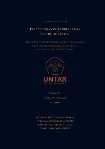 Darmadi, Teofilus Alwin (2022) Perancangan interior Larissa Aesthetic Center (DI - 2308). Skripsi thesis, Universitas Tarumanagara.