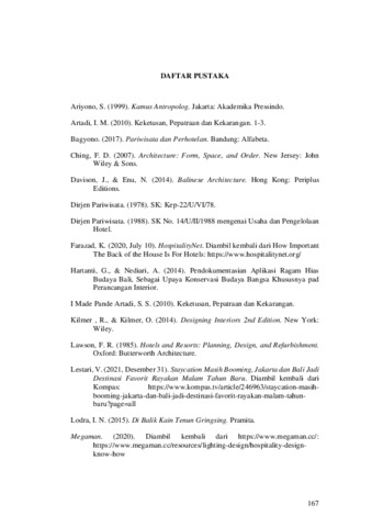 Bali merupakan salah satu destinasi yang paling sering dikunjungi wisatawan, baik lokal maupun mancanegara karena keindahan alamnya yang menjadi daya tarik bagi pengunjung yang datang. Hal ini menjadikan Bali harus memiliki sarana-sarana yang mampu mendukung kegiatan pengunjung, salah satunya adalah sarana akomodasi. Sarana akomodasi dapat meliputi tempat penginapan seperti hotel, villa, resort, dll. Di tahun 2021, dimana trend staycation dan roadtrip Bali sedang meningkat, perkembangan bisnis akomodasi di Bali juga meningkat menjadikan Kota Badung menduduki peringkat pertama dalam perkembangan bisnis hotel di Bali. Oleh sebab itu, setap bisnis perhotelan di Bali sedang berlomba-lomba untuk meningkatkan pelayanan untuk dapat menarik wisatawan. Selain pelayanan, hal yang harus ditingkatkan adalah perancangan interiornya sehingga dapat menarik perhatian para pengunjung. Perancangan interior yang baik harus mampu memberikan kenyamanan dan mencukupi kebutuhan aktivitas penggunanya mulai dari rekreasi, hiburan, dan relaksasi dengan memperhatikan segala aspek mulai dari sirkulasi, pencahayaan, penghawaan, penataan furniture, zoning, hingga pemilihan material dan warna. Perancangan kali ini akan dilakukan di Bali, yang terkenal dengan iklim tropisnya. Perancangan ini bertujuan agar desain hotel dapat menggunakan kebudayaan Bali dalam beberapa elemen interiornya sehingga dapat memperkenalkan budaya Indonesia kepada wisatawan mancanegara, juga dapat mengangkat citra dari Wyndham Garden. Metode perancangan yang digunakan adalah 8 tahap perancangan menurut Rosemary Kilmer. Diharapkan perancangan Hotel Wyndham Garden Kuta Beach ini dapat lebih menarik perhatian pengunjung dan memberikan kenyamanan bagi para penggunanya, juga menjadi hotel yang meninggalkan kesan baik bagi para pengunjung dengan adanya perancangan dan fasilitas yang baik. Kata Kunci: Bali, Beachside Hotel, Desain Interior, Hotel Tropical