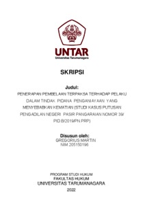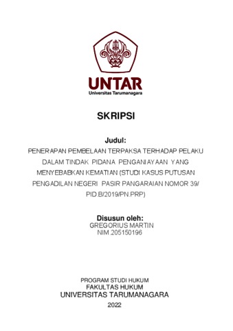 Martin, Gregorius (2022) Penerapan Pembelaan Terpaksa Terhadap Pelaku Dalam Tindak Pidana Penganiayaan Yang Menyebabkan Kematian (Studi Kasus Putusan Pengadilan Negeri Pasir Pangaraian Nomor 39/Pid.B/2019/PN.Prp). Skripsi thesis, Universitas Tarumanagara.