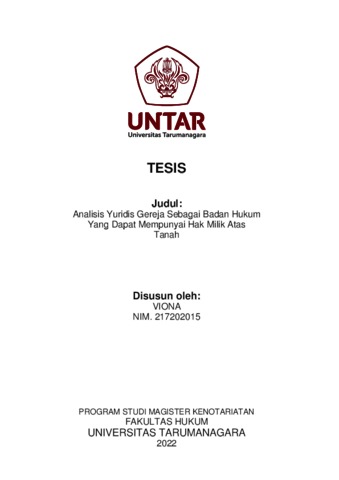 Viona, Viona (2022) Analisis Yuridis Gereja Sebagai Badan Hukum Yang Dapat Mempunyai Hak Milik Atas Tanah. Masters thesis, Universitas Tarumanagara.
