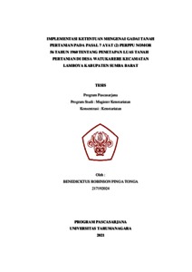 Tonga, Benedicktus Robinson Pinga (2021) Implementasi Ketentuan Mengenai Gadai Tanah Pertanian Pada Pasal 7 Ayat (2) Perppu Nomor 56 Tahun 1960 Tentang Penetapan Luas Tanah Pertanian Di Desa Watukarere Kecamatan Lamboya Kabupaten Sumba Barat. Masters thesis, Universitas Tarumanagara.