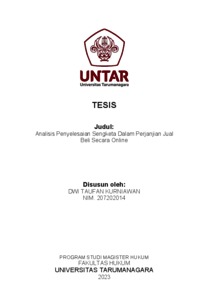 Kurniawan, Dwi Taufan (2022) Analisis Penyelesaian Sengeta Dalam Perjanjian Jual Beli Secara Online. Masters thesis, Universitas Tarumanagara.