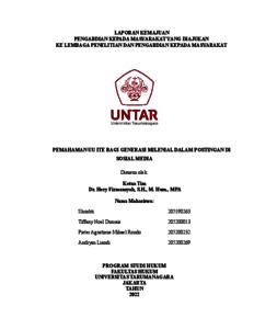 Firmansyah, Hery and Shrishti, Shrishti and Dumais, Tiffany Noel and Rondo, Pieter Agustinus Mikael and Liandi, Andryan (2022) Pemahaman UU ITE Bagi Generasi Milenial Dalam Postingan Di Sosial Media. Laporan Pengabdian Kepada Masyarakat.