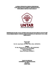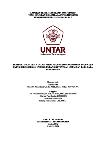 Sudiro, Amad and Firmansyah, Hery (2021) Perspektif Keadilan Dalam Pertanggungjawaban Pidana Bagi Wajib Pajak Berdasarkan Undang-Undang Ketentuan Umum Dan Tata Cara Perpajakan. Laporan Penelitian Skema Portofolio.