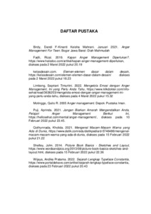 Pandemi Corona Virus Disease (Covid 19) mulai pada tahun 2020 hingga sekarang tahun ini 2022. Berbagai perasaan seperti kecemasan, takut, atau sedih yang dialami. COVID 19 ini tidak hanya menyerang pada kesehatan fisik tapi juga menyerang kesehatan mental. Perubahan gaya hidup yang berubah drastis dengan melakukan pencegahan diri untuk selalu berada di rumah begitu mempengaruhi usia transisi hingga dewasa. Dengan adanya pandemi membuat mereka sulit untuk beradaptasi yang bisa mengakibatkan setres, perubahan emosional salah satunya adalah amarah. Anger management merupakan cara yang pas sekali untuk orang–orang yang membutuhkan nasihat cara mengatasi amarahnya, dengan belajar dan mengetahui tentang anger management kita bisa mengenali tanda–tanda pada diri sendiri pada saat kita akan marah dan mengambil sikap yang positif dalam meluapkan kemarahan. Mengapa buku anger management diperlukan? Dengan adanya buku anger management kita bisa tau cara mengatasinya dengan hal yang positif, bagaimana memecahkan masalah Perancangan ulang buku ini menggunakan ilustrasi yang berguna untuk memudahkan pembaca untuk mengerti apa maksud dari kata–kata yang sulit dimengerti dari buku tersebut. Keyword: Buku Edukasi; Ilustrasi; Kesehatan Mental; Marah
