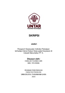 Sari, Fadillah Yulinda (2023) Pengaruh Kesesuaian Individu-Pekerjaan terhadap Intensi Keluar Kerja Pada Karyawan di Industri Manufaktur PT X. Skripsi thesis, Universitas Tarumanagara.