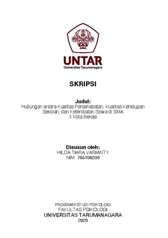 Varianty, Hilda Tiara (2023) Hubungan Kualitas Persahabatan, Kualitas Kehidupan Sekolah, dan Keterlibatan Siswa di SMA X Kota Bekasi. Skripsi thesis, Universitas Tarumanagara.