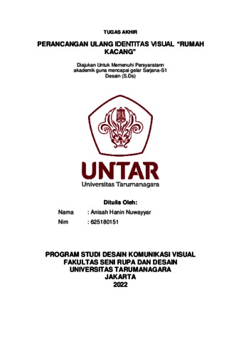 Nuwayyar, Anisah Hanin (2022) Perancangan ulang identitas visual rumah kacang (DKV - 2899). Skripsi thesis, Universitas Tarumanagara.