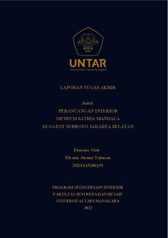 Tulenan, Efraim Jeremi (2022) Perancangan interior museum Satria Mandala di Gatot Subroto Jakarta Selatan (DI - 2345). Skripsi thesis, Universitas Tarumanagara.