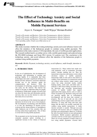 Andi wijaya, Dokumen (2021) The Effect of Technology Anxiety and Social Influence in Multi-Benefits on Mobile Payment Services. The Effect of Technology Anxiety and Social Influence in Multi-Benefits on Mobile Payment Services. ISSN ISSN 2352-5398 / ISBN 978-94-6239-567-1