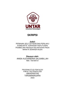 Salsabillah, Anisa Alexandria (2023) Peranan Self-Esteem Dan Perilaku Konsumtif Terhadap Keputusan Pembelian Produk Kecantikan Pada Wanita Dewasa Muda. Skripsi thesis, Universitas Tarumanagara.