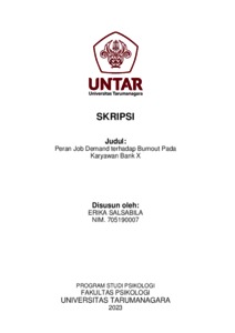 Salsabila, Erika (2023) Peran Job Demand terhadap Burnout Pada Karyawan Bank X. Skripsi thesis, Universitas Tarumanagara.