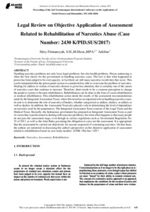 Firmansyah, Hery and Adeline, Adeline (2020) Legal Review on Objective Application of Assessment Related to Rehabilitation of Narcotics Abuse (Case Number: 2430 K/PID.SUS/2017). Proceedings of the 2nd Tarumanagara International Conference on the Applications of Social Sciences and Humanities (TICASH 2020).