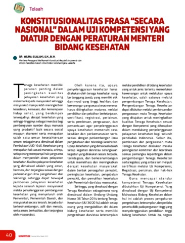 Silalahi, Wilma (2022) Konstitusionalitas Frasa "Secara Nasional" Dalam Uji Kompetensi Yang Diatur Dengan Peraturan Menteri Bidang Kesehatan. Majalah Konstitusi.