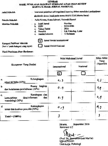 Kirana, Aulia and Sahrani, Riana and Hastuti, Rahmah (2016) Intervensi Pelatihan Self-Regulated Learning dalam Mereduksi Prokrastinasi Akademik Siswa (Studi pada Siswa SMPN “X” di Jakarta Barat). Karya Ilmiah Dosen, 7 (1). pp. 21-38. ISSN 0216-4486