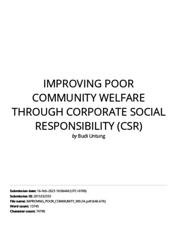 Untung, Budi and Sudiro, Amad and Gunardi, Lie Turnitin : Improving Poor Community Welfare through Corporate Social Responsibility (CSR). Journal of Legal, Ethical and Regulatory Issues. ISSN 1544-0044