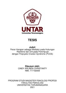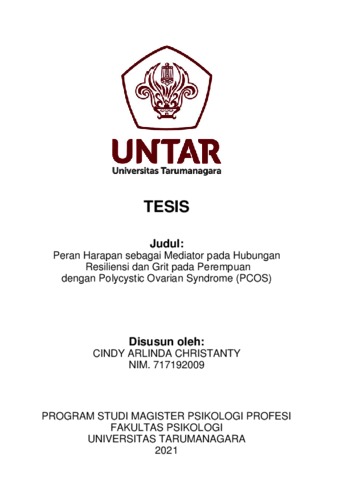Christanty, Cindy Arlinda (2023) Peran Harapan sebagai Mediator pada Hubungan Resiliensi dan Grit pada Perempuan dengan Polycystic Ovarian Syndrome (PCOS). Masters thesis, Universitas Tarumanagara.