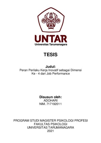 Adohari, Adohari (2023) Perilaku Kerja Inovatif Sebagai Dimensi Ke - 4 Dari Job Performance. Masters thesis, Universitas Tarumanagara.