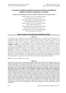 Artikel Sinta 4 ANALISIS YURIDIS EKSISTENSI BADAN HUKUM KOPERASI SEBAGAI SARANA KEMAJUAN UMKM.pdf Download (413kB) | Preview |