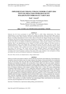 Rasji, Rasji and Gunardi, Gunardi (2022) Implementasi Undang-Undang Nomor 6 Tahun 2014 Tentang Desa Pada Pemilihan Kuwu Di Kabupaten Indramayu Tahun 2021. Jurnal Muara Ilmu Sosial, Humaniora, dan Seni, 6 (1).