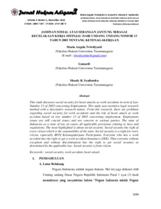 Triwidyarti, Maria Angela and Gunardi, Gunardi and Syailendra, Moody R. (2021) Jaminan Sosial Atas Serangan Jantung Sebagai Kecelakaan Kerja Ditinjau Dari Undang Undang Nomor 13 Tahun 2003 Tentang Ketenagakerjaan. Jurnal Hukum Adigama, 4 (2). ISSN E: 2655-7347, P: 2747-0873