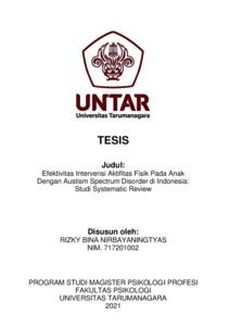 Nirbayaningtyas, Rizky Bina (2023) Efektifitas Intervensi Aktifitas Fisik pada Anak dengan Autism Spectrum Disorder di Indonesia; Studi Systematic Review. Masters thesis, Universitas Tarumanagara.