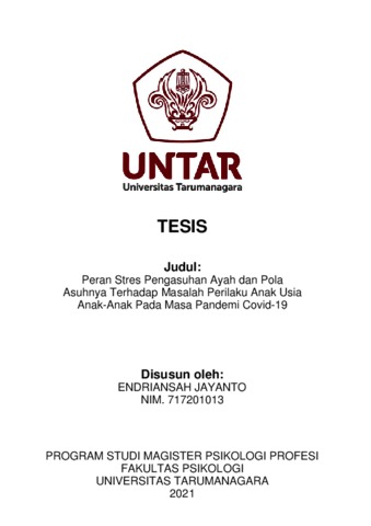 Jayanto, Endriansah (2023) Peran Stres Pengasuhan Ayah dan Pola Asuhnya Terhadap Masalah Perilaku Anak Usia Anak-Anak Pada Masa Pandemi Covid-19. Masters thesis, Universitas Tarumanagara.