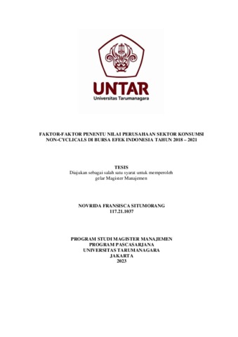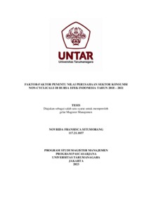 SITUMORANG, NOVRIDA FRANSISCA (2022) FAKTOR-FAKTOR PENENTU NILAI PERUSAHAAN SEKTOR KONSUMSI NON-CYCLICALS DI BURSA EFEK INDONESIA TAHUN 2018 – 2021. Masters thesis, Universitas Tarumanagara.