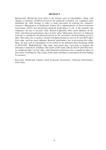 alternatives hypothesis. Findings: The results of this study indicate that IC and GCG have no significant effect on firm value, while financial performance has a significant effect on firm value. Contribution: The results of this study contribute to investment decision making by investors.