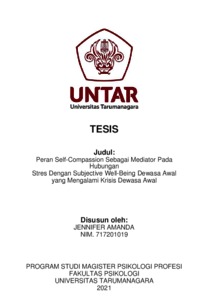 Amanda, Jennifer (2023) Peran Self-Compassion Sebagai Mediator Pada Hubungan Stres Dengan Subjective Well-Being Dewasa Awal yang Mengalami Krisis Dewasa Awal. Masters thesis, Universitas Tarumanagara.