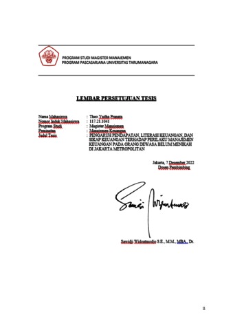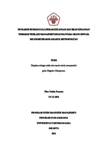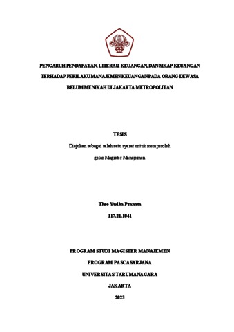 PRANATA, THEO YUDHA (2022) PENGARUH PENDAPATAN, LITERASI KEUANGAN, DAN SIKAP KEUANGAN TERHADAP PERILAKU MANAJEMEN KEUANGAN PADA ORANG DEWASA BELUM MENIKAH DI JAKARTA METROPOLITAN. Masters thesis, Universitas Tarumanagara.