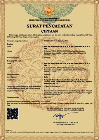 Prof. Dr. Jeane Neltje Saly, S.H., M.H., Dr. Gunardi Lie, S.H., M.H. dkk (2021) Perspektif Hukum Penyertaan Saham Negara Pada Perusahaan Terbatas Dalam Tata Kelola Perusahaan Yang Baik (Good Corporate Governance-GCG). EC00202146617.