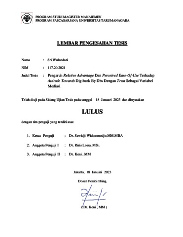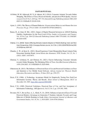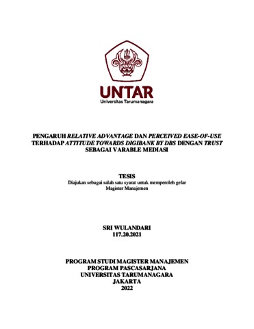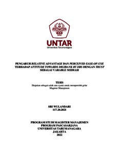 WULANDARI, SRI (2022) PENGARUH RELATIVE ADVANTAGE DAN PERCEIVED EASE-OF-USE TERHADAP ATTITUDE TOWARDS DIGIBANK BY DBS DENGAN TRUST SEBAGAI VARABLE MEDIASI. Masters thesis, Universitas Tarumanagara.